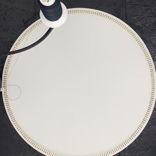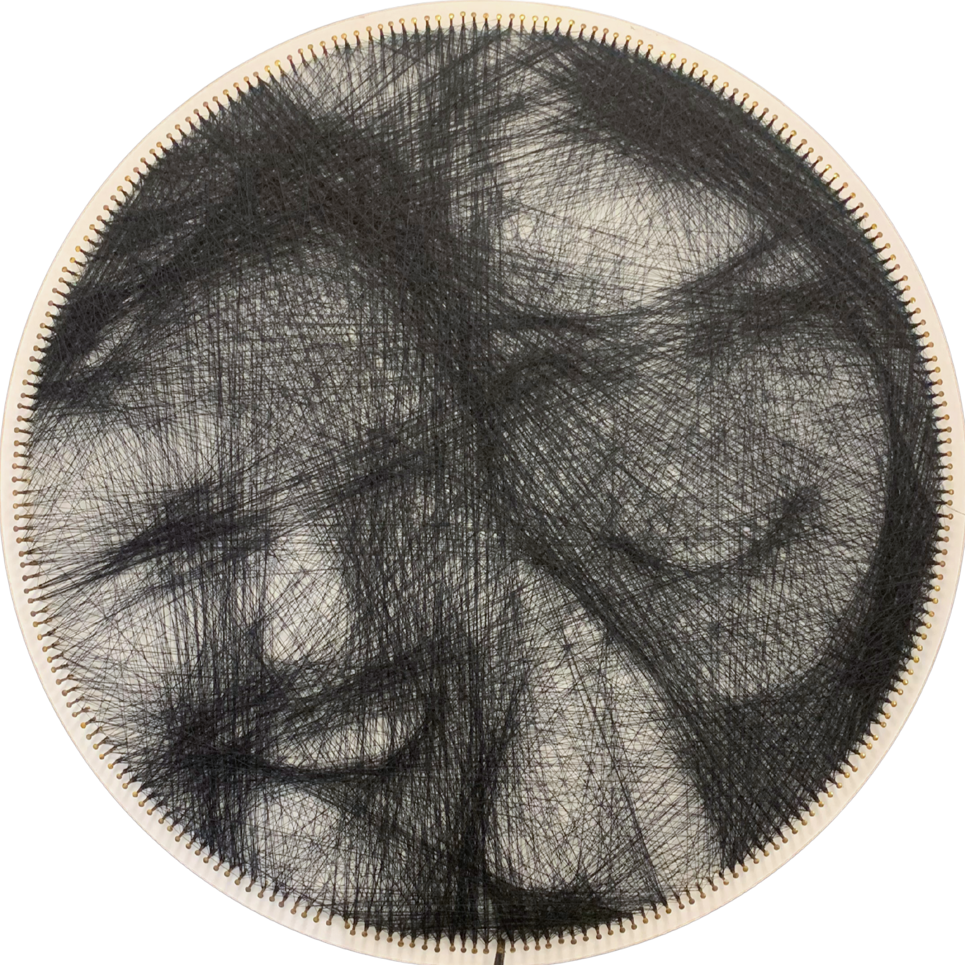 50 cm (19.7") round string art portrait, made from one continuous black thread crossed over 15,000 times.