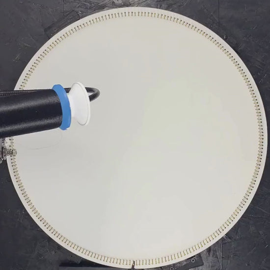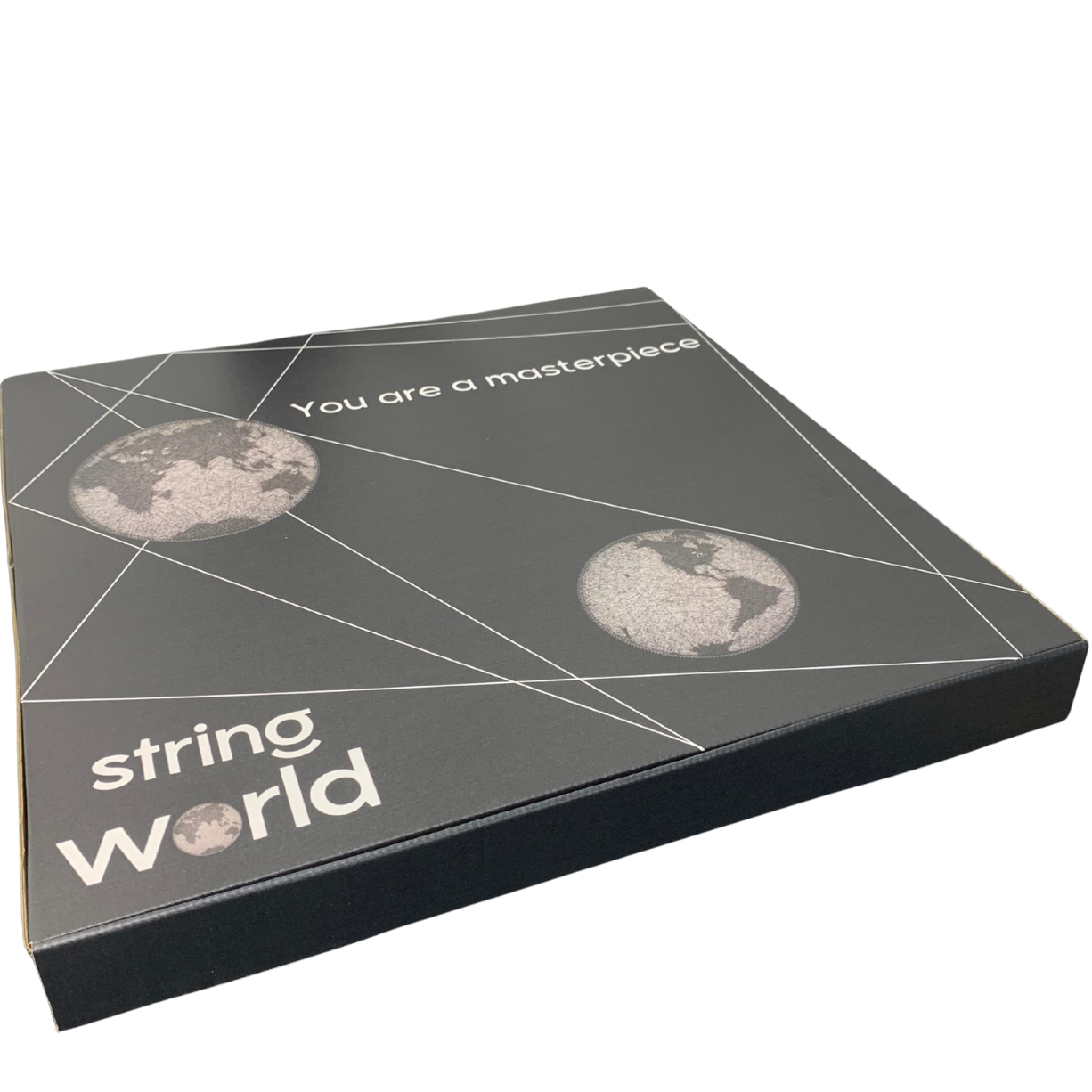 Your photo is transformed into a 50 cm (19.7") round string art portrait, made from one continuous black thread crossed over 15,000 times.